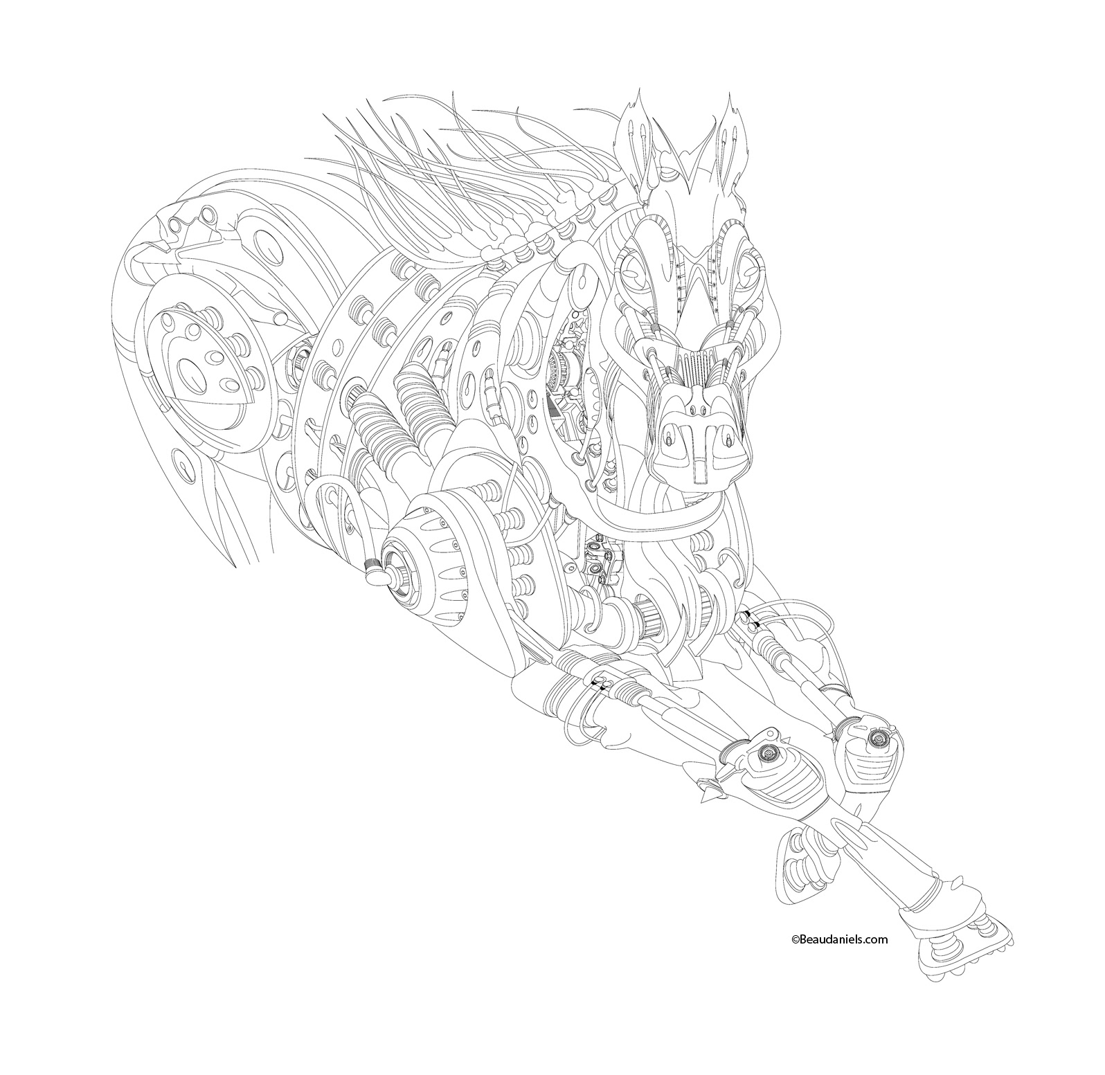 Illustrator line art for the mechanical horse illustration.