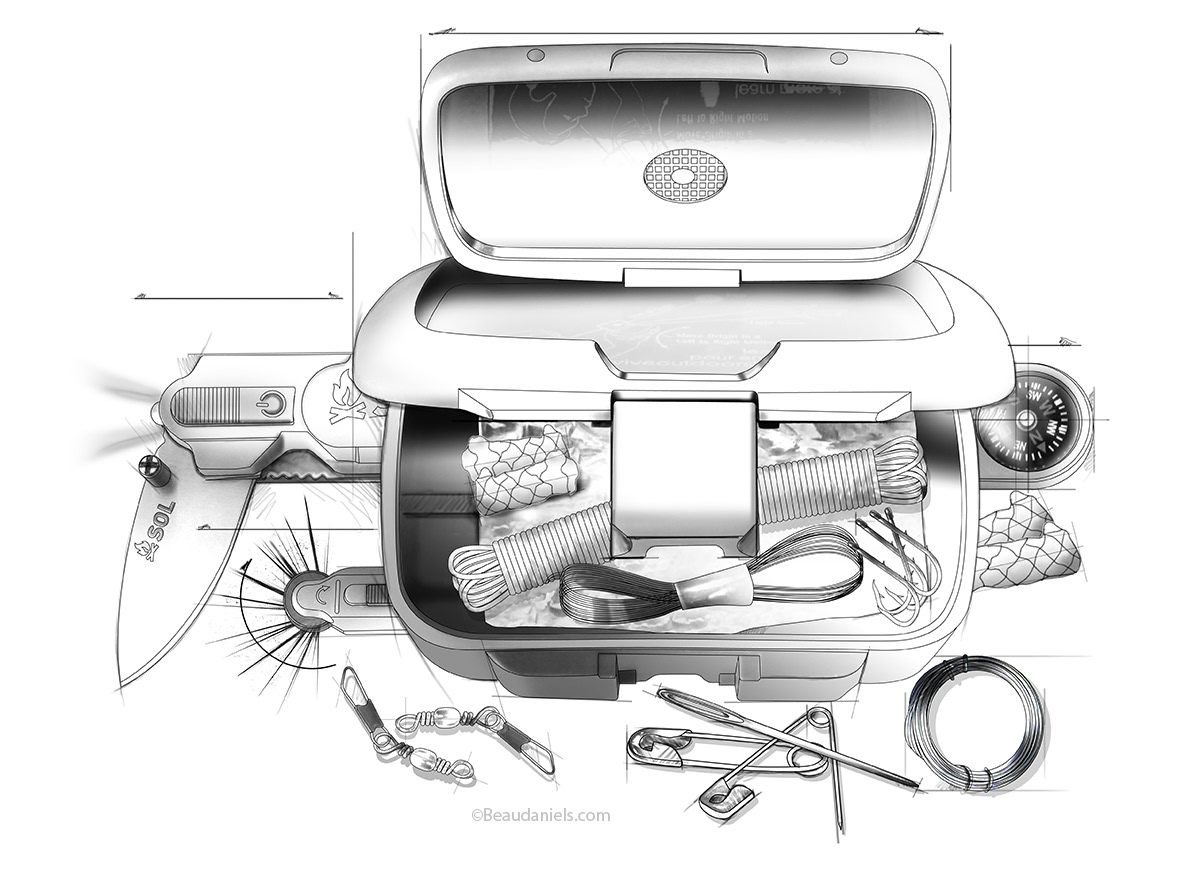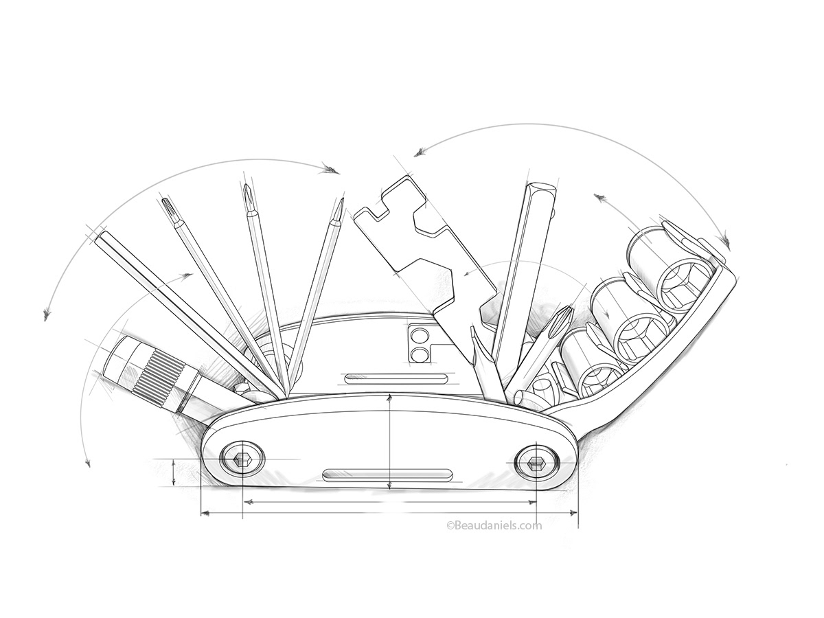 Restoration Hardware. Anywhere Multi Tool. Pencil style drawing.